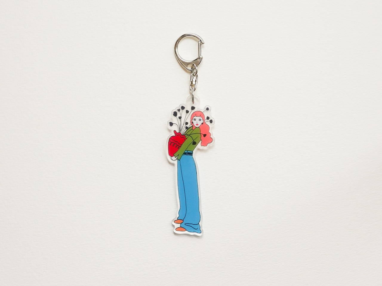 2025年に初めてイベント出店した際に制作した、しおり名刺のイラストをアクリルキーホルダーにしました。シルバーのナスカン付き。